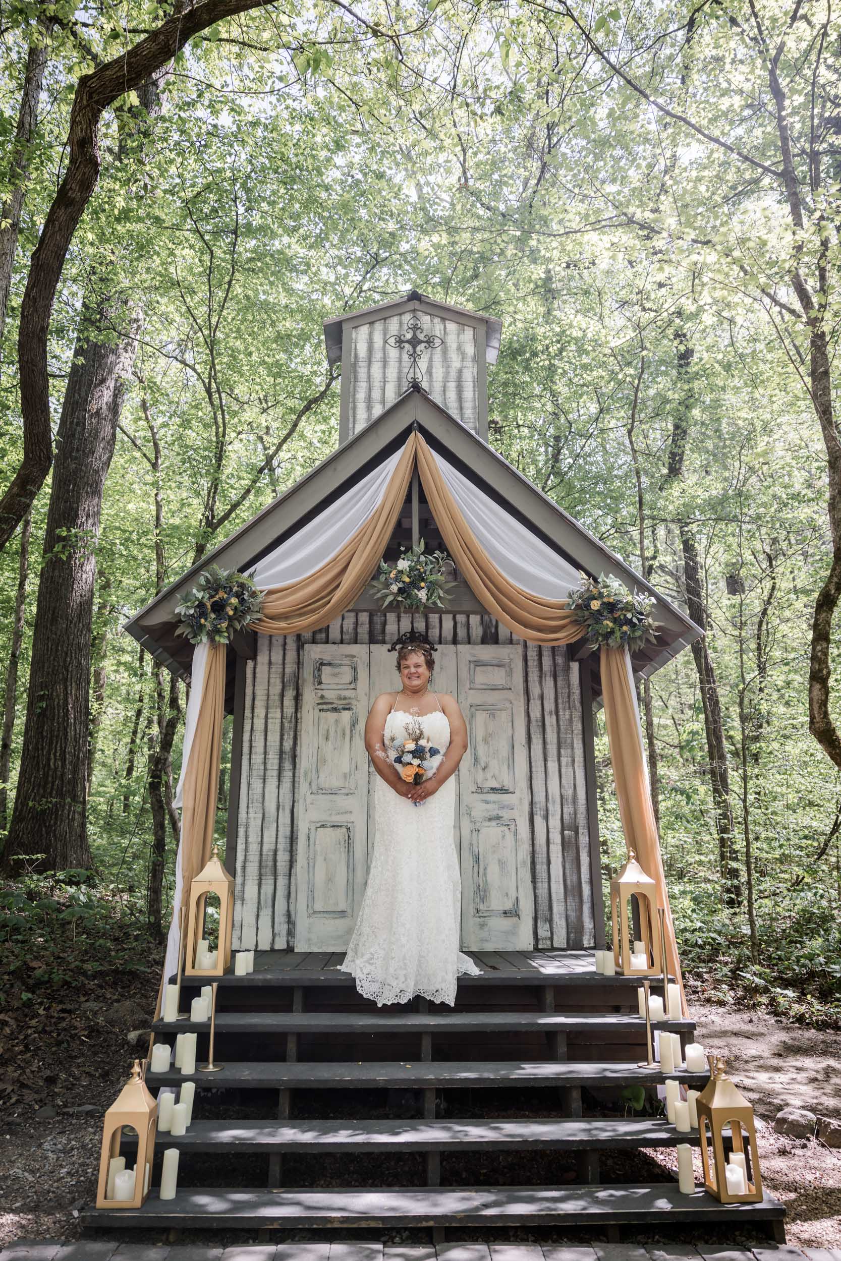 The result was cheerful and romantic without overpowering the natural surroundings. One of the best things about getting married at Chapel in the Hollow is that the forest itself becomes part of your wedding design. Towering trees, seasonal greenery, and soft natural light create a stunning backdrop all on their own.