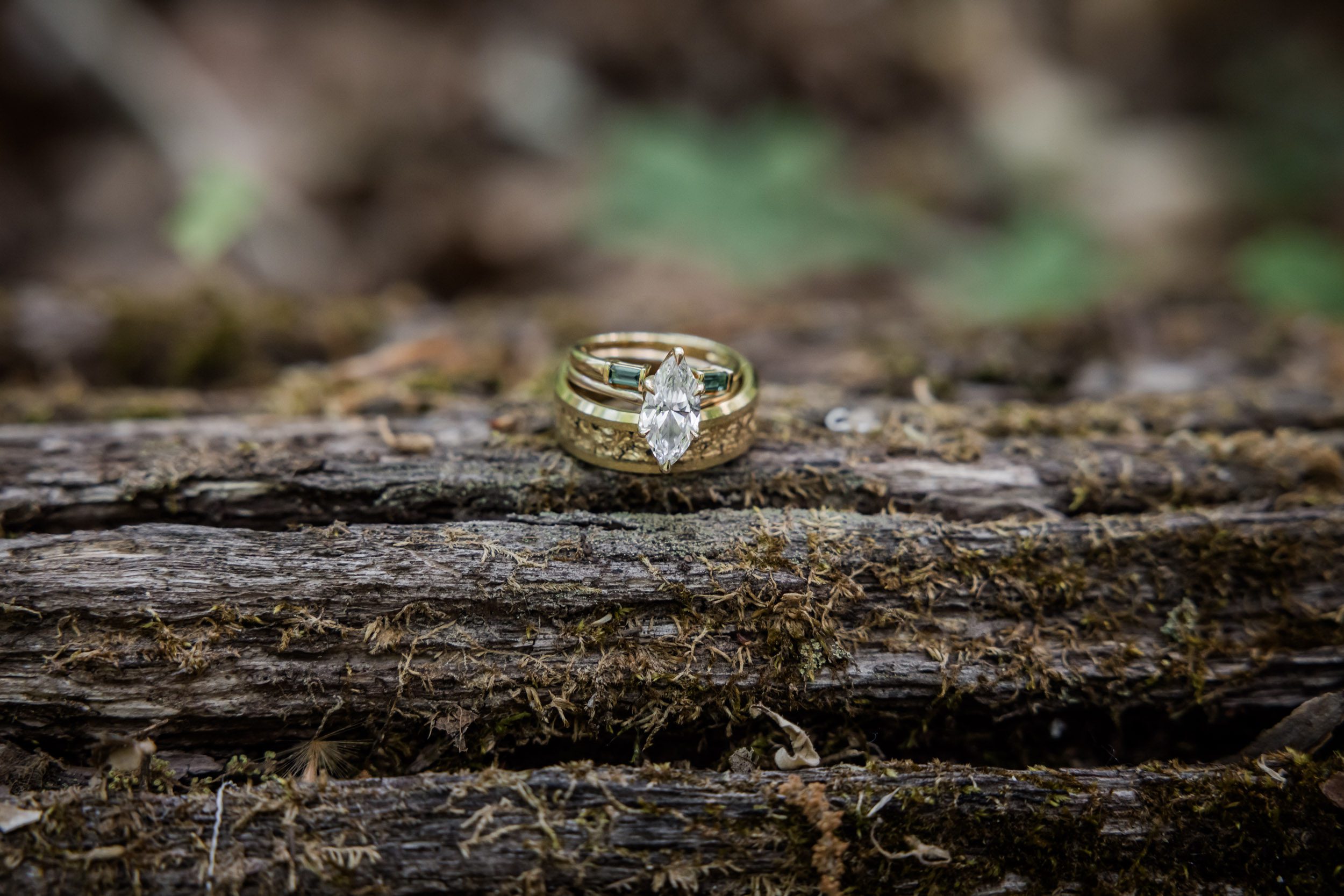 Cory proposed at the beach in 2022. He sent me and our son down to the pool said he would be down shortly he eventually did come down but it was to get us that his grandpa “had a surprise for us.” We went up to the condo and he had an obstacle set up with the dining chairs and all kinds of things in the hall to our room. We eventually got through the maze and to the room he had a heart shape in the bed made with a sheet and the ring box in the middle. He said, ” Through all the trials and tribulations and the obstacle that we’ve had I will always go through them with you!” Then asked me to marry him.