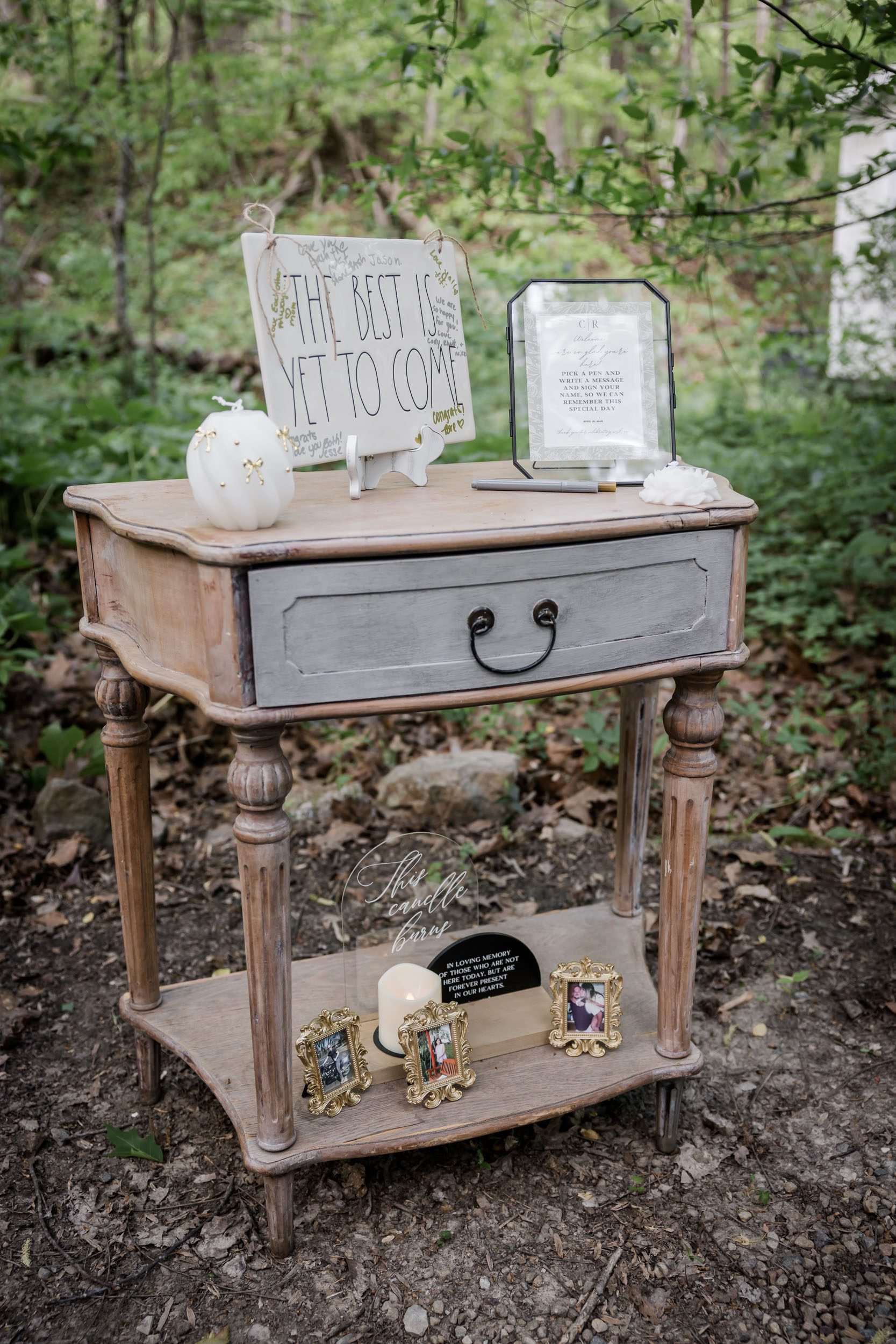 The result? A fresh, earthy aesthetic that blended seamlessly into the surrounding forest. The greenery echoed the life and growth of their relationship, making it the perfect visual representation of a love story that had been years in the making.